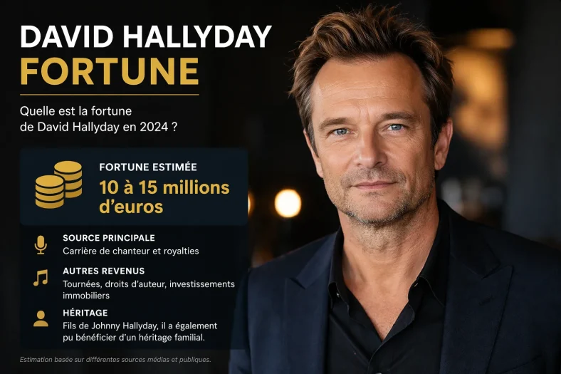 Soyons honnêtes : aucune source officielle ne publie la fortune exacte de David Hallyday. Ce que l’on trouve dans la presse people, c’est souvent des estimations approximatives, parfois gonflées, parfois sous-évaluées. Les sites spécialisés type Celebrity Net Worth avancent une fortune estimée entre 8 et 15 millions d’euros, en tenant compte de sa carrière musicale, de son héritage familial et de ses actifs immobiliers.
